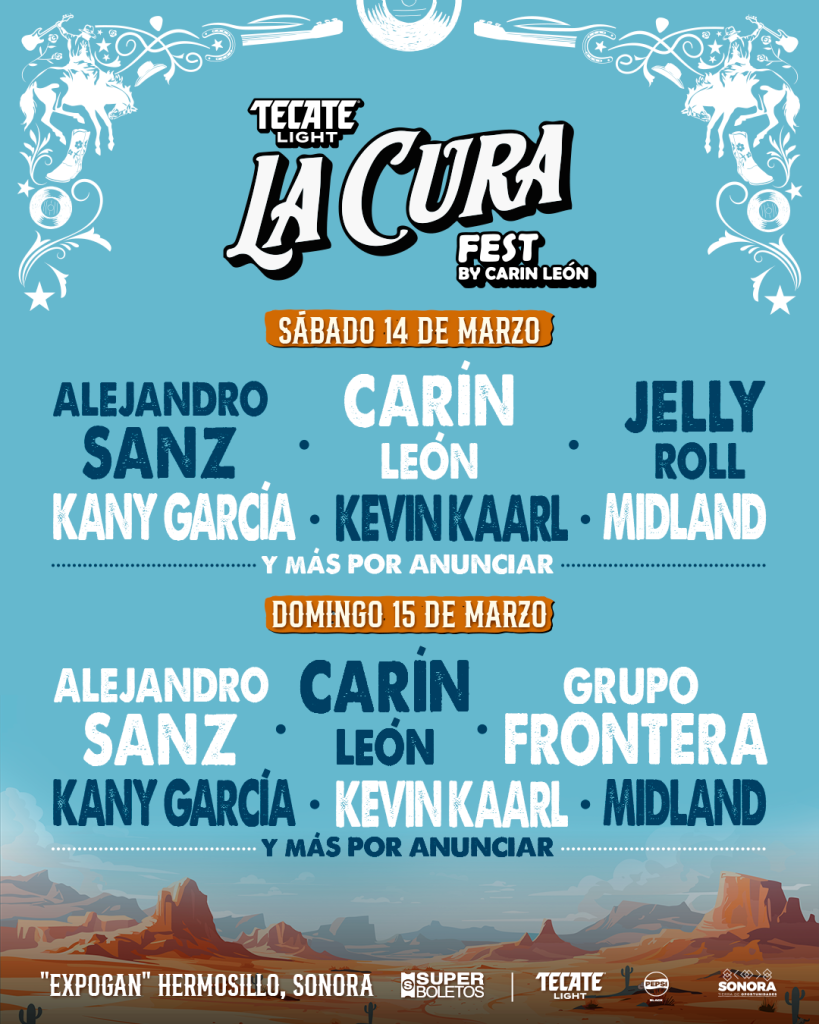 Con Carín León como el gran anfitrión y curador de ambas jornadas, el festival brillará con dos fechas de calidad mundial con figuras de la talla de Alejandro Sanz, Kany García, Kevin Kaarl y Midland, quienes serán el hilo conductor de este hito histórico en Hermosillo. Además, el festival presenta variaciones exclusivas que hacen de cada fecha una pieza única: mientras que el sábado 14 la energía se elevará con el estilo único de Jelly Roll, el domingo 15 el desierto se transformará con el ritmo imparable de Grupo Frontera.  Ambas fechas comparten el ADN de un festival de primer nivel, asegurando que, sin importar el día elegido, la energía se mantendrá al máximo para los miles de asistentes que agotaron las entradas del primer día en tiempo récord.